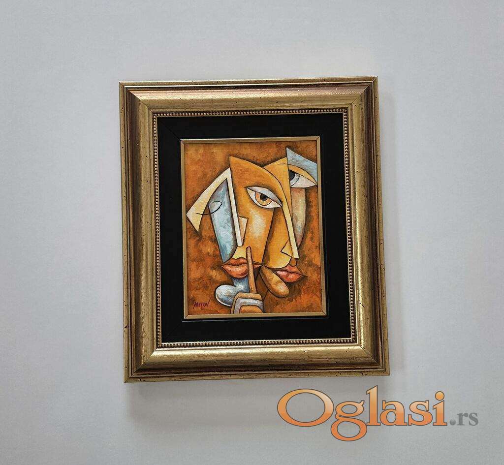 Ulje na platnu Mala tisina, prelepo umetnicko delo. Slika je uramljena u jako lep ram, dimenzije slike sa ramom 43 x 38. Privatna kolekcija.