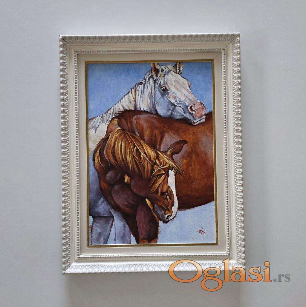 Ulje na platnu - Bliskost konja, prelepa slika!