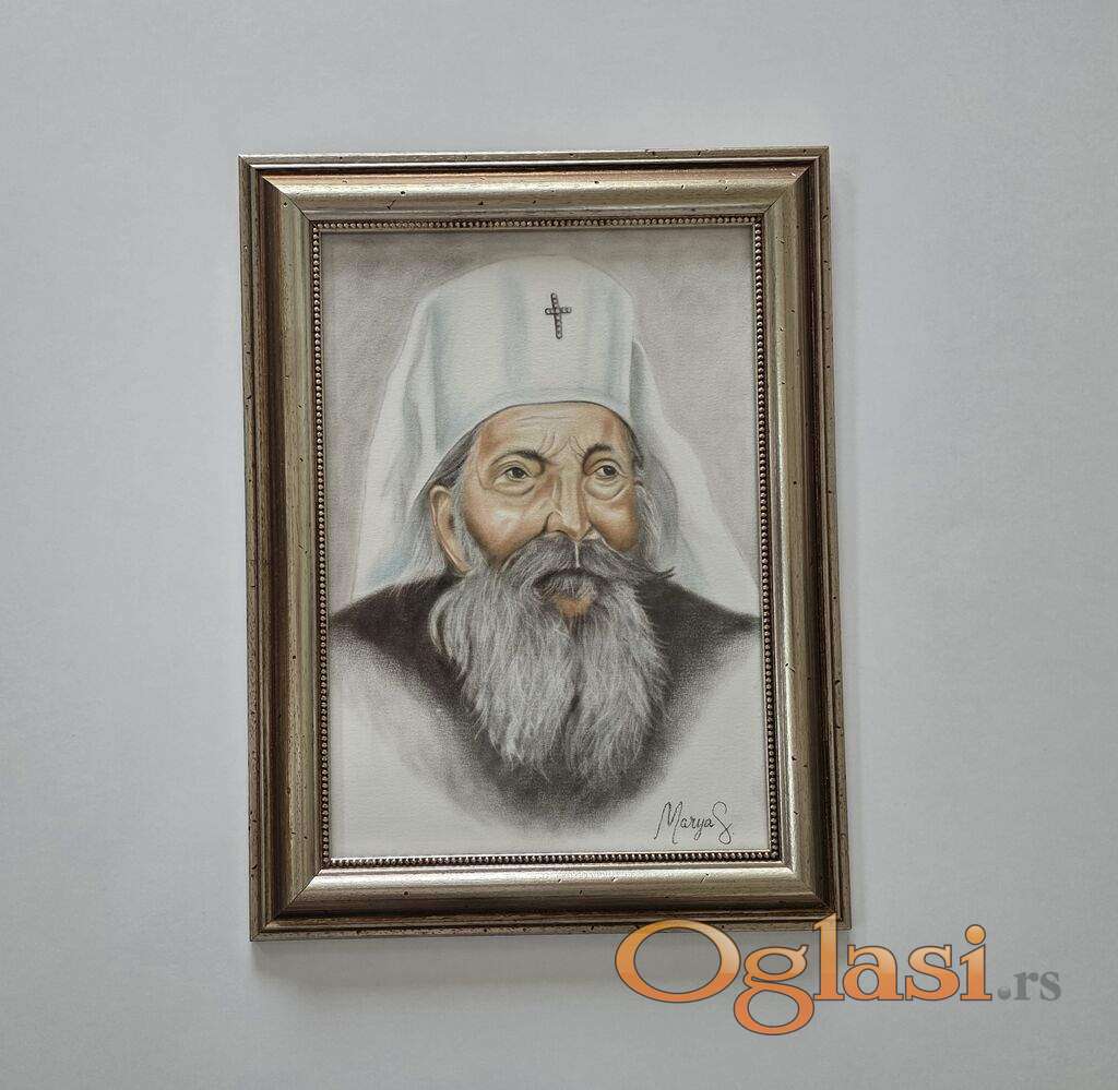 Slika Patrijarh Pavle, tehnika pastel. Prelepo umetnicko delo. Slika je uramljena u jako lep ram, dimenzije slike sa ramom 50 x 42. Privatna kolekcija.