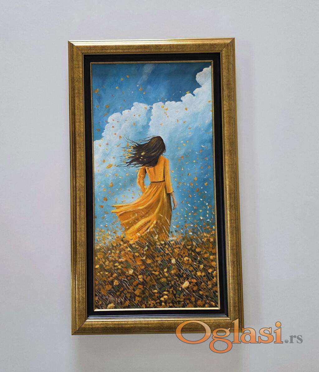 Ulje na platnu - Devojka i jesen, prelepa slika!