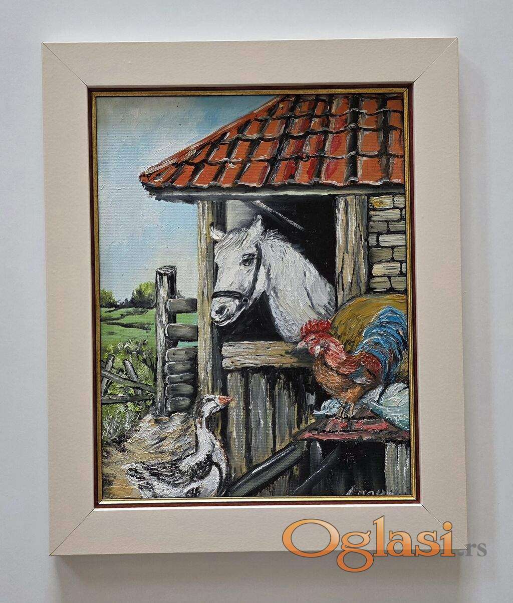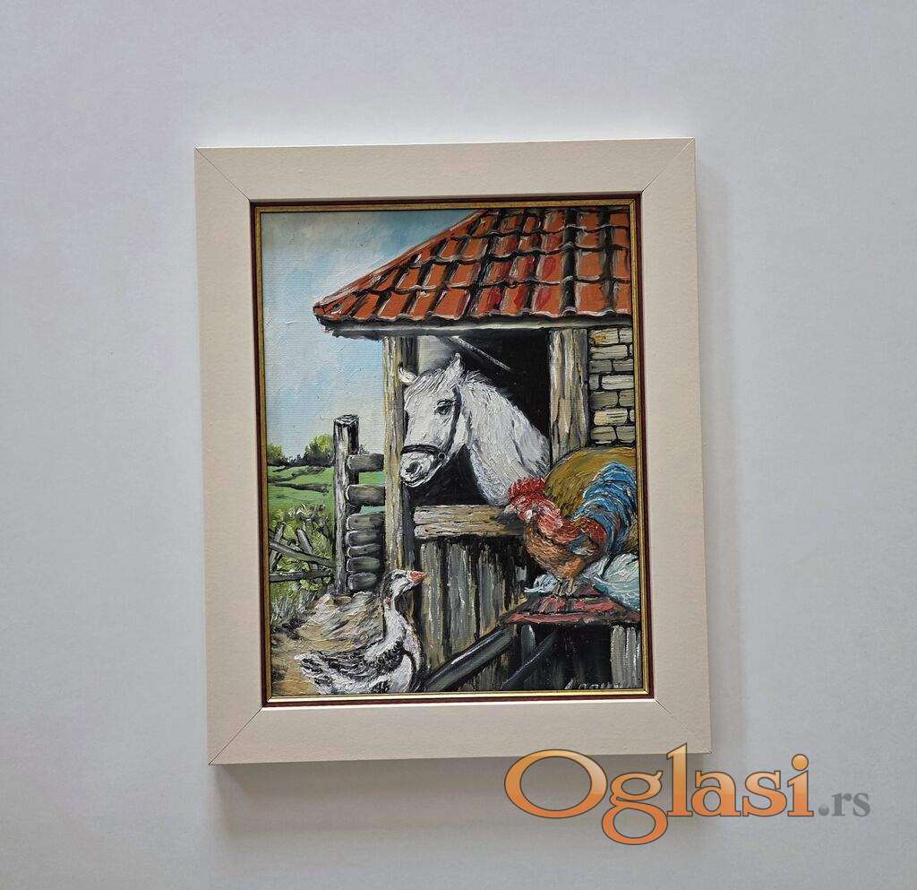 Ulje na lesonitu - Dan na selu, prelepo!