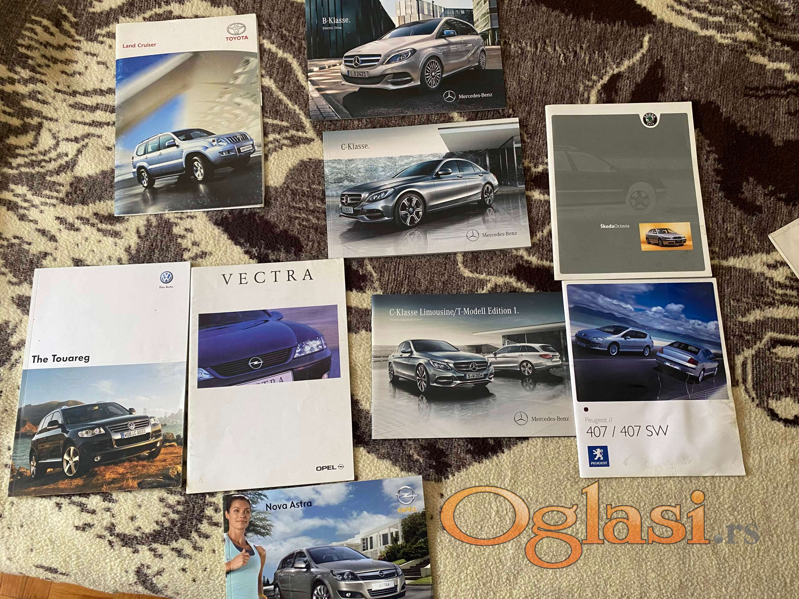 Prospekti starih i novih automobila. U dobrom stanju sa informacijama specifikacijama i fotografijama.