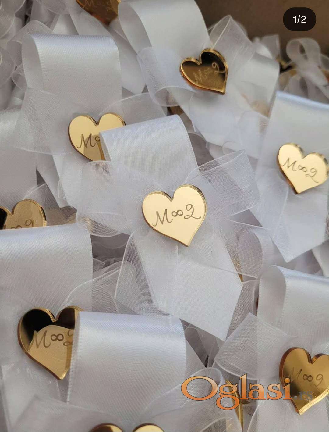 - Bela traka, beli organdin, srce sa inicijalima