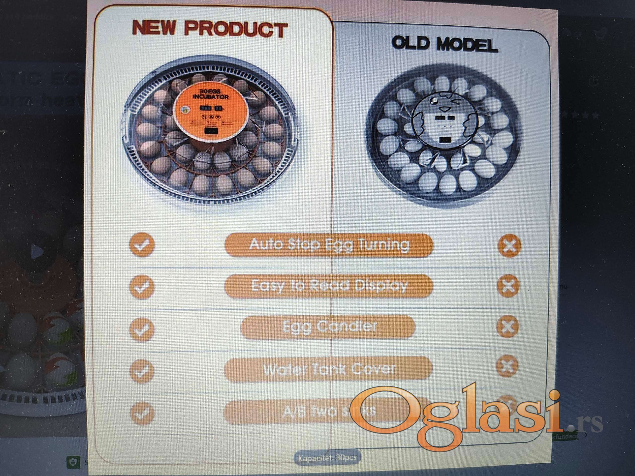 Automacki inkubator 30 jaja već viđeni s tim da kod ovog inkubatora sami dosipate vodu ali ima precizan dikitalni prikaz vlažnosti non stop.