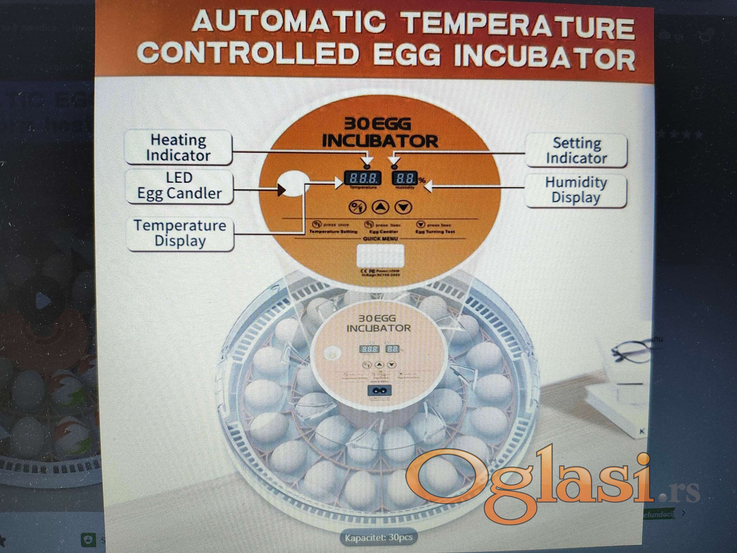 Automacki inkubator 30 jaja -sa prikazom vlage