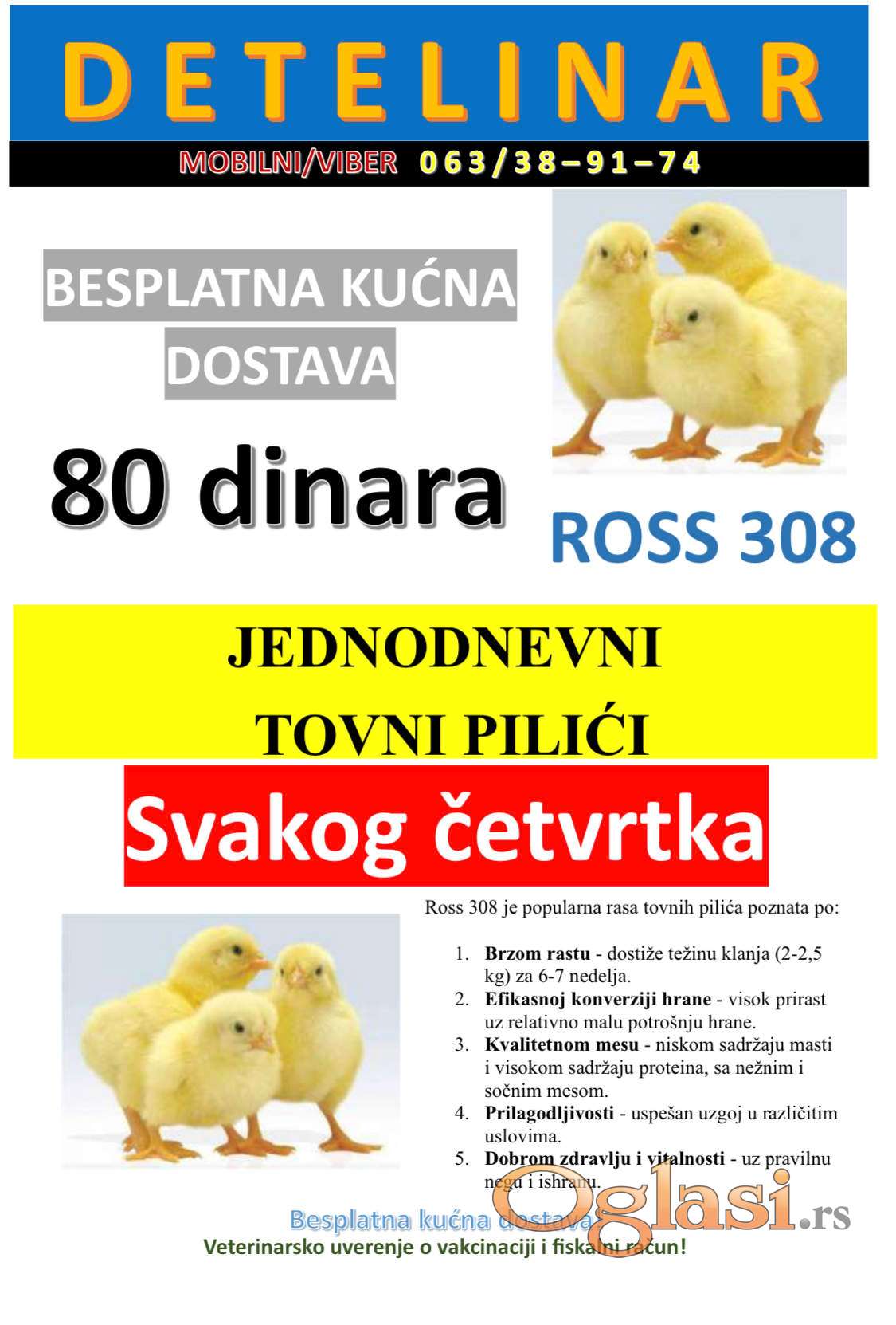 Na prodaju jednodnevni tovni pilici! Dostava na vasu adresu je besplatna! Dostavu vrsimo svakog cetvrtka!