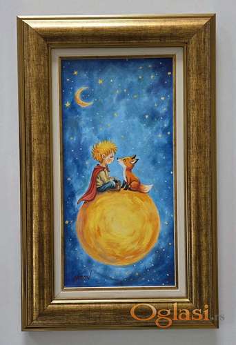 Tekst oglasa: <p>Ulje na platnu Mali princ, prelepo umetnicko delo. Slika je uramljena u jako lep ram, dimenzije slike sa ramom 55 x 35. Privatna kolekcija.</p> |