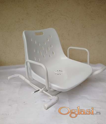 Tekst oglasa: <p>Anatomski oblikovan sedalni deo, školjkast, udoban, vodootporan. (fotografije 1 - 7)</p> <p>Na krajevima se nalaze gume i ispod stolice graničnici koji upru u stranice kade i sprečavaju klizanje stolice i oštećenje kade.</p> <p>Proizvedena za nemačko tržište</p> <p>DIMENZIJE SEDALNOG DELA:</p> <p>ŠIRINA/DUBINA, oko - 44 cm x 40cm</p> <p>Ima nekoliko položaja u kojima može da se ''ukoči'' da se neokreće . . </p> <p>Tri opcije "šara" na naslonu.</p> <p> </p> <p>Drugi, jednostavniji model je bez naslona i nije rotirajuć, cena je 30 e. (8 - 10 fotografije)</p> <p>Imamo više modela u ponudi: i za SEDEĆU i za TUŠ kadu . . .</p> <p style="text-align:justify">Imamo najveći izbor stolica za tuš kadu (isto tako i sedeću kadu) u Srbiji, više od 10 modela, od rotirajućih, kružnih, kvadratnih, pravougaonih, do trouglastih (tronožaca), sa naslonom za leđa i ruke i bez naslona za leđa ili ruke, sklopive i nesklopive, one koje se motiraju na zid ili samostojeće, od 100 do 200 kg nosivosti . . .</p> |