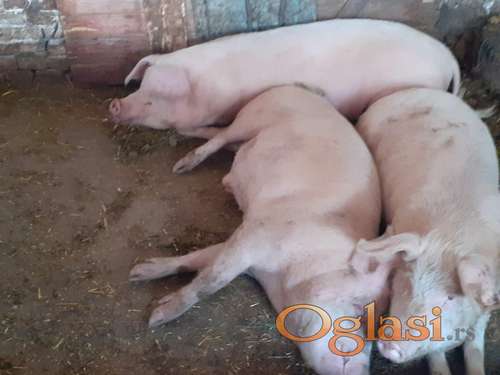 Tekst oglasa: <p>4 ženska praseta teski oko 35 do 40 kilograma i 4 ranjenika teski oko 130 do 150 kilograma hranjeni prirodnom i zdravom hranom </p> |