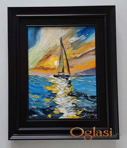 Tekst oglasa: <p>Ulje na platnu Plovidba morem, prelepo umetnicko delo. Slika je uramljena u jako lep ram, dimenzije slike sa ramom 56 x 46. Privatna kolekcija.</p> |