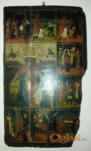 Tekst oglasa: <p><strong>Ruska ikona</strong> naslikana sredinom XIX veka; 29x47,5 cm; nedostaje leva strana, desni donji deo je oštećen.</p> |