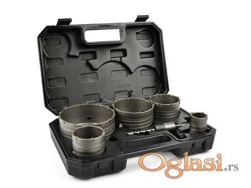 Tekst oglasa: <p>Set kruna za bušenje betona 40-125 mm </p> <p>fi 40</p> <p>fi 65</p> <p>fi 80</p> <p>fi 100</p> <p>fi 125</p> <p>drska 75 mm za sds+</p> <p>Set krune za rupe / burgija 6 komada.</p> <p>Komplet sadrži adapter sa bušilicom za vođenje, namenjen za upotrebu sa bušilicama sa SDS-Plus montažnim nosačem.</p> <p>Karakteristike proizvoda:</p> <p>Set uključuje pet krune za rupe i SDS-Plus adapter</p> <p>nazubljeni obod testera za rupe od sinterovanog karbida</p> <p>krune za rupe u veličinama od 40 mm do 125 mm</p> <p>SDS-Plus adapter sa pilot bušilicom</p> <p>ceo set je upakovan u praktičan plastični kofer</p> <p>Tehničke specifikacije:</p> <p>Materijal: čelik, sinterovani karbid</p> <p>Prečnici krune: 40, 65, 80, 100, 125 mm</p> <p>Visina krune: 75 mm</p> <p>Montaža: SDS-Plus</p> <p>Novo i ne korišćeno </p> <p>Ukoliko zelite da porucite<br /> Posaljite poruku <br /> 1 Ime i prezime<br /> 2 Ulica i broj<br /> 3 Mesto i postanski broj<br /> 4 Broj telefona za kontakt</p> |