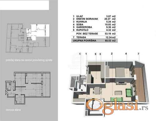 Tekst oglasa: Prodaje se dvosoban, funkcionalan, ušuškan, svetao stan na četvrtom spratu stambenog objekta u izgradnji na odličnoj lokaciji. Stan se sastoji od ulaznog hodnika, kupatila, kuhinje, malog degažmana, dnevnog boravka sa trpezarijom, spavaće sobe i terase. Stan će biti opremljen najsavremenijom drvo-aluminijum višekomornom stolarijom, sigurnosnim ulaznim vratima, višeslojnim tarket parketom, brendiranom keramikom i sanitarijama stranog proizvođača. Stambeni objekat se gradi od najsavremenijih građevinskih i termoizolacionih materijala i posedovaće energetski pasoš najviše klase, moderan putnički i auto lift za podzemne garaže na dva nivoa na čvrstoj podlozi. Mogućnost kupovine garažnog mesta. Planirani rok završetka radova je 01.04.2026 godine. Cena stana je izražena bez PDV-a. Za kupce prvog stana postoji povrat PDV-a. Nalazi se u neposrednoj blizini Bulevara kralja Aleksandra, Cvetkove pijace, Aviv parka, osnovne škole, vrtića, srednje škole, više trgovačkih marketa, kao i stajališta više linija autobuskog i tramvajskog prevoza. Agencijska nadoknada iznosi 2%. . |