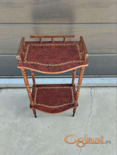 Tekst oglasa: <p>Vintage dvospratna polica / stalak za telefon.</p> <p>Unikatnog dizajna, veoma dekorativna i praktična za dom ili studio.</p> <p>Na gornjoj polici postoje manji tragovi vremena – vidljivo na fotografijama, ne utiču na funkcionalnost.</p> <p> Cena: 8€</p> <p> Preuzimanje lično – Beograd</p> <p>!!!!!!!!!!!!!! Ne šaljem kurirskom službom</p> |