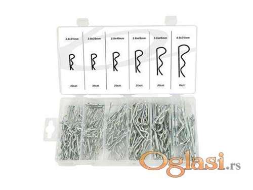 Tekst oglasa: <p>Set opruznih osiguraca za osovinu 150 kom. <br /> Pouzdani kako u profesionalnoj službi tako i u garaži<br /> Karakteristike proizvoda <br /> 6 različitih veličina<br /> 150 stavki<br /> izdržljiv i jednostavan za korištenje<br /> celokupno postavljeno u zatvorenu plastičnu kutiju sa pregradama<br /> Kit sadržaja<br /> 2,4 x 31 mm - 42 komada<br /> 2.0 x 33 mm - 30 komada<br /> 2,0 x 40 mm - 25 komada<br /> 2.8 x 42 mm - 25 komada<br /> 3,5 x 45 mm - 20 komada<br /> 4,0 x 75 mm - 8 komada</p> <p>Proizvod: Poljska<br /> Novo i ne korisceno</p> <p>Ukoliko zelite da porucite, posaljite poruku preko SMS PORUKE ili VIBERA <br /> 1. Ime i prezime<br /> 2. Ulica i broj<br /> 3. Postanski broj mesto<br /> 4. Kontakt telefon<br /> Ili pozovite na broj telefona 0611914635</p> |