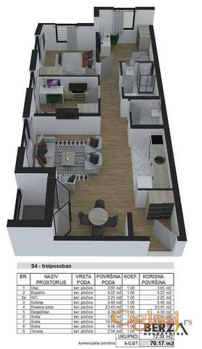 Tekst oglasa: Agencijska šifra: 1007420.Prodaje se troiposoban stan od 70.17 m2 na drugom spratu zgrade u izgradnji na Adicama, od kvalitetnog investitora. Rok izgradnje je Jun 2026. Savršen izbor za porodični život ili investiranje, miran kraj Adica.- Uredna dokumentacija- Mogućnost kupovine parking mesta uz stan- Pouzdan investitor sa iskustvom u stambenoj gradnjiZa više informacija i zakazivanje obilaska – pozovite nas. Berza Nekretnine |