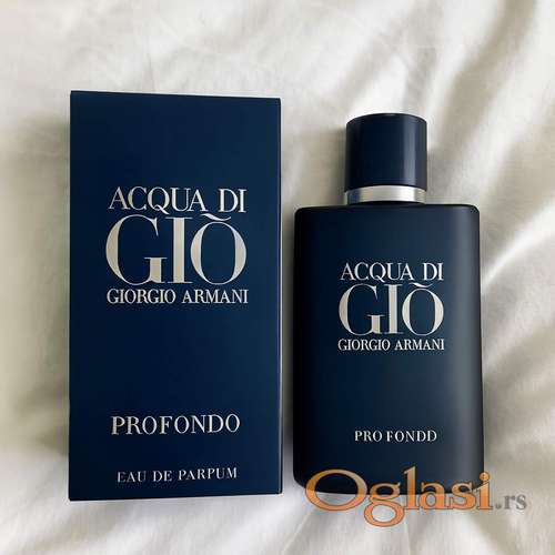 Tekst oglasa: <p>“Dubine Mediterana pretočene u bočicu… 🌊✨ Armani Acqua di Giò Profondo Homme donosi snagu okeana, svežinu citrusa i eleganciju lavande 🌌🌿. Miris koji otkriva muževnost u svom najintenzivnijem obliku – beskrajno plav, sofisticiran i zavodljiv 💎<br /><br /> Pafremi sa originalnom mirisnom notom.<br /> Intenzivni miris parfema se zadrzava na koži ceo dan, a na odeci i po nekoliko dana.<br /><br /> Originalno pakovanje sa celofanom i bar kodom.💯</p> <p> </p> <p>AKO VAS ZANIMA NEKI PARFEM POSALJITE MI PORUKU NA 063-10-96-971,NA POZIVE NE ODGOVARAM SAMO NA PORUKE HVALA.</p> |