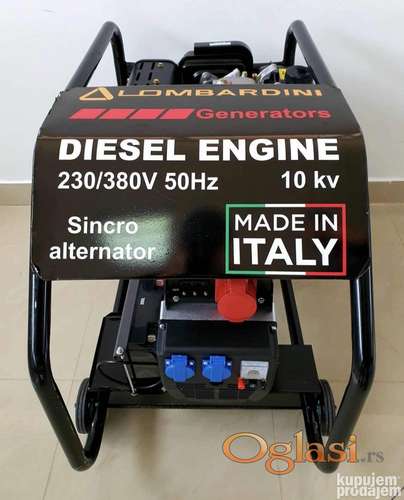 Tekst oglasa: <p><strong>Prodajem nov i kvalitetan agregat za struju LOMBARDINI.<br /> -MOZE PREVOZ NA KUCNU ADRESU UZ DODATNE PUTNE TROSKOVE ✅<br /> Model: Gsa - M3 - 3<br /> Snaga: 10 kW<br /> Broj obrtaja: 3000 RPM<br /> Pogonsko gorivo: dizel<br /> Monofazni i trofazni izlaz<br /> Podaci za poručivanje (ime, prezime, ulica i broj, grad, kontakt telefon)</strong></p> <p><strong>0654831535(viber, whatsapp)</strong></p> |