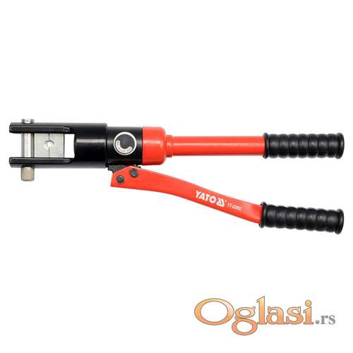 Tekst oglasa: <p>Ručna hidraulična presa za kablove 10-300 mm2 12T <br /> Krimp klešta hidraulična za kablovske papučice 10-300 mm2 12T PROFI Klešta za krimpovanje buksni i papučica 10-300 mm2 12T PROFI<br /> Ručna presa sa hidrauličnim cilindrom.<br /> - Potisna igla koja blokira matrice<br /> - Razdvojena matrica za presovanje<br /> - Klip<br /> - Rotirajuća glava cilindra<br /> - Glavni aktuator ventil<br /> - Pokretna ruka aktuatora<br /> - Poklopac ručice<br /> Opseg presovanja:<br /> aluminijum: 16-240 mm2<br /> bakar: 16-300 mm2<br /> Dužina: L = 470 mm<br /> Pritisak: 18-20T<br /> veličina čeljusti za presovanje (mm2): 16; 25; 35; 50; 70; 95; 120; 150; 185; 240; 300<br /> Efikasno presovanje terminala na električnim žicama.<br /> Stezanje čeličnih užadi<br /> Novo i ne korišćeno</p> <p> </p> <p>Proizvod: Poljska<br /> <br /> ---------------------------------Ukoliko zelite da porucite-------------------<br /> Posaljite poruku preko SMS PORUKE, VIBER<br /> 1 Ime i prezime<br /> 2 Ulica i broj<br /> 3 Mesto i postanski broj<br /> 4 Broj telefona za kontakt</p> |