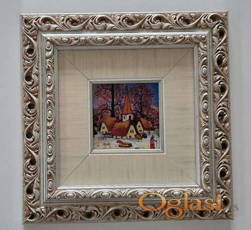 Tekst oglasa: <p>Naiva, ulje na staklu Crkva u selu. Minijatura. Prelepo umetnicko delo. Slika je uramljena u jako lep ram. Dimenzije slike sa ramom 28 x 28. Privatna kolekcija.</p> |