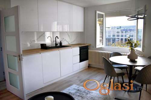 Tekst oglasa: <p>Moderno opremljen potpuno renoviran stan prekoputa Sajma. <br /> Treci sprat, zgrada ima lift.</p> <p>40m2 sa terasom. Sve sto je potrebno za udoban zivot</p> <p>Javni parking ispred zgrade.</p> |