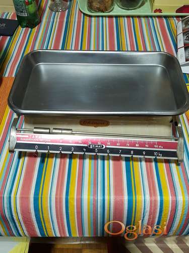 Tekst oglasa: <p>Na prodaju vintidž vaga krem boje veoma očuvana, tegići rade, meri do 10 kg.</p> <p>Cena: 2000,00 din</p> <p>Tel: 065/633-25-90, 064/553-99-65</p> |