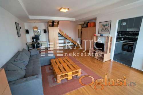 Tekst oglasa: Svetao i funkcionalan dupleks. Izdaje se trosoban stan u zgradi novije gradnje sa urednim i održavanim ulazom i liftom. Visina plafona na donjem nivou je 2,60m a na gornjem se kreće od 1m do 3,10m. Stan je jednostrano orijentisan, ka ulici, a pozicioniran istočno i vrlo je svetao, jer dnevni boravak poseduje dupla vrata kroz koja se izlazi na terasu duž celog spoljašnjeg zida. Na gornjem nivou su postavljeni krovni prozori. Do spavaćeg bloka vode hrastove stepenice sa širokim gazištima zbog bezbednosti stanara, a naročito dece. Prostorije: Prvi nivo: hodnik, kuhinja, trpezarija objedinjena sa dnevnim boravkom, terasa. Drugi nivo: dve spavaće sobe, kupatilo, ostava. Zahumska ulica se nalazi u mirnom delu grada, blizu centra i Vukovog spomenika, na par minuta hoda od Đeram pijace. Kraj je opskrbljen sadržajem koji je potreban za ugodan život, u neposrednoj blizini su škole, vrtići i prodavnice. Agencijska provizija 60% |