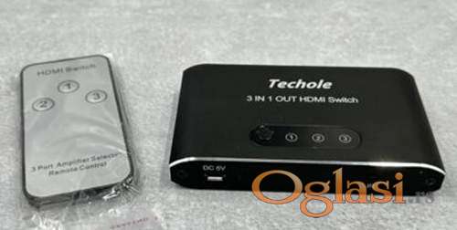 Tekst oglasa: <p>HDMI switch signala sa 3 porta sa daljinskim.<br /> Razdelnik ima 3 ulazna porta i 1 izlazni hdmi port.<br /> Omogućuje povezivanje televizora (ili monitora) sa samo jednim hdmi portom sa više ulaza (recimo IPTV, PC, PS3/360/Wii U/PS4/Xbox One).<br /> Automatski prebacuje do 3 HDMI uredjaja na ulazu na 1 HDMI izlaz (recimo port na LCD televizoru ili monitoru). Ako imate priključeno manje od 3 uređaja, on će menjati u krug prvi sledeći ulaz koji je priključen</p> |