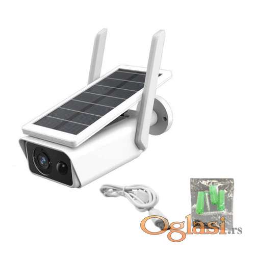Tekst oglasa: <p>Solarna IP WIFI Kamera Full Hd sa dve antene 3.0 mpx</p> <p>Sadrzaj paketa:<br /> 1 x Solarna kamera<br /> 1 x antena<br /> 1 x nosač<br /> 1 x uputstvo</p> <p>Solarna IP wI-FI kamera<br /> Materijal: aluminijska legura<br /> Boja: bela<br /> Infracrveno svetlo: ugrađeno<br /> Rezolucija slike: 1080P, 1920×1080<br /> Funkcija skladištenja: Podržava MIKRO SD memorijsku karticu, 8-64 GB (pakovanje ne sadrži SD karticu).<br /> Pametan alarm: indukcija PIR ljudskog tela<br /> Baterija: 2x18650mAh baterije<br /> Metoda punjenja: solarno napajanje; Napajanje USB portom<br /> Vodootporna klasa: IP65<br /> -Pogodno za unutrasju ili spoljnu upotrebu.</p> <p>Ukoliko zelite da porucite<br /> Posaljite poruku <br /> 1 Ime i prezime<br /> 2 Ulica i broj<br /> 3 Mesto i postanski broj<br /> 4 Broj telefona za kontakt</p> |