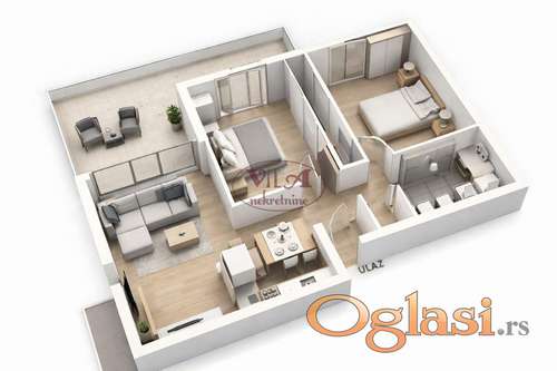 Tekst oglasa: <p>Prodaje se odličan trosoban stan u manjoj zgradi, na samoj granici Novog Sada i Veternika u lepoj i širokoj ulici, blizu svih urbanih sadržaja. Stan se nalazi na drugom spratu urbane vile, kvalitetno gradjene po svim standardima modernog i komfornog stanovanja. Grejanje je podno na gas sa kalorimetrima. Stan ima dnevnu sobu i dve spavaće sobe, kupatilo, predsoblje i kuhinju koja je povezana sa dnevnom sobom i dve terase. Postoji mogućnost i pripajanja stanu veće krovne terase, po želji kupca. Investitor je siguran i pouzdan sa svom urednom dokumentacijom i dozvolama i za kupce prvog stana, može se ostvariti povrat Pdv-a od 10%.Rok završetka izgradnje je predvidjen za oktobar 2026. godine.Vredi pogledati, odlična nekretnina.Tel 065/424 55 77 i 064/6586099. Više fotografija na našem sajtu.</p> |