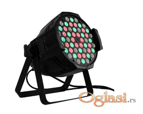 Tekst oglasa: <p>Kućište je od metala. <br /> Poseduje hladnjak i ventilaciju. <br /> Moguće podešavanje više režima promena osvetljenja, strob, promene boja, podešavanje brzine.<br /> Dmx<br /> Rucno programiranje<br /> Vise komada na stanju<br /> LED Light: 54 x 3 watt<br /> Light Source: 54pcs<br /> Ultra Bright LEDs ( Red: 12pcs; Green: 18pcs; Blue: 18pcs; White: 6pcs )<br /> LEDs Angle: 25 Degree<br /> Input power: AC 110V/220V, 50-60HZ<br /> Control model: Auto/DMX 512/ master & slave/voice active<br /> Weight: 2 KG <br /> Poseduje displej na zadnjem delu pomoću kod vidite u kom je režimu rada. <br /> Postoji mogućnost povezivanja više ovakvih u celinu, kao i povezivanje sa profi rasvetom, DMX, ali tu opremu nemam u prodaji. Sasvim normalo funkcioniše kao zaseban uređaj. <br /> Radi na 220V.<br /><br /><strong>Moguće lično preuzimanje na Novom Beogradu!<br /> Slanjem Brzom postom!</strong><br /><br /> </p> |