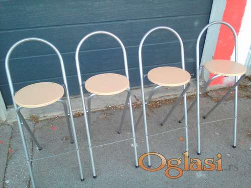 Tekst oglasa: <p>KOMPAKTNE sklopive barske stolice SA NASLONOM, visina sedišta 73 cm, vrlo malo korišćene, BESPREKORNO očuvane. Navedena cena je po komadu - prodaju se u paru (2+2) ili sve 4 za 85 €.</p> <p>Lično preuzimanje ili slanje nakon uplate, za ostale informacije pozvati.</p> |
