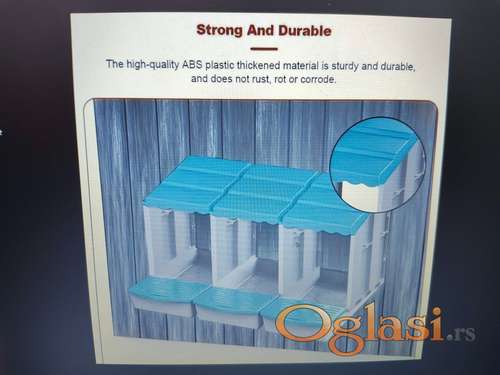 Tekst oglasa: <p>Prodajem nove pvc kućice za nošenje jaja sa dva i tri mesta.</p> <p>1.plava boja 3 mesta 7250 din.</p> <p>Još dosta opreme za koke i piliće inkubatori , pojilice , hranilice, automacka vrata.</p> <p>Pogledajte moje ostale oglase.</p> <p>Prednost ovog gnezda je lako za montažu,dezinfekcija i održavanje,Uvek imate čista jaja ako sve koke nose na isto mesto.Estecki savršeno za hobi kokošinjac.</p> <p>Šaljem posexpresom može i lično preuzimanje.</p> <p>0604462217</p> |