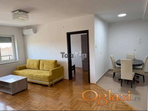 Tekst oglasa: Komplet opremljen i odmah useljiv stan u novoj zgradi u Kertvarošu. Stan se sastoji od ulaznog hodnika, prostranog dnevnog boravka koji je povezan sa kuhinjom i trpezarijom, dve spavaće sobe i terase. Grejanje je na gas, podovi obloženi parketom i keramikom. |