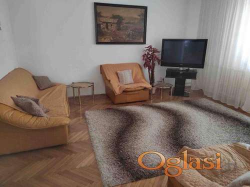Tekst oglasa: Izdaje se namešten stan na 1.spratu u vojnoj zgradi. Stan je na odličnoj lokaciji.Na 700m od stana su pijaca,posta,Ideja,Maxi,Tempo,dve skola.Vrtic je na 100m od zgrade gde je stan,autobusko stajaliste je ispred zgrade.Zgrada je pozicionirana tako da je park za decu i odrasle iza zgrade a ispred nje je parking za automobile. Stan je svetao,zimi izuzetno topao,a leti prijatna hladovina. Agencijska provizija 50% od prve zakupnine. |