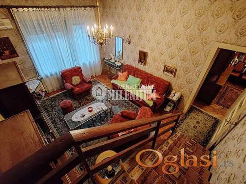 Tekst oglasa: U ponudi je duplex, smešten u veoma lepoj, odrzavanoj zgradi, u odličnom stanju iz 60-tih godina. Stan je na 3 spratu od 4, bez lifta, Stan ima jedinstven raspored prostorija. sa kuhinnom i ostavom. Ima dva ulaza, sporedni i glavni. Sa sporednog ulaza se ulazi u manji hodnik iz koga se ulazi u veliku trpezariju, kuhinju i zastvorenu lođu a sve orjentisano ka dvorišnom delu objekta. Iz drugog dela hodnika se ulazi u veliki antre iz koga se ulazi u kupatilo sa prirodnom ventilacijom, velike spavaće sobe, dnevnog boravka sa izlazom na veliku terasu orijentisanu ka Dalmatinskoj ulici. Odatle idu stepenice koje vode u gornji nivo stana. Na godnjem nivou su dve manje spavaće sobe sa kosinama sa normalnim prozorima u badžama krova, i funkcionalno manje kupatilo. Stan je veoma funkcionalan i u izvornom stanju je. Lokacija savršena, centar grada... |