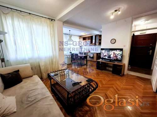 Tekst oglasa: <p>Komforan, veoma svetao, kompletno namešten trosoban stan na atraktivnoj lokaciji, odličnog rasporeda, u novijoj zgradi. Sastoji se od prostranog dnevnog boravka sa uvučenom kuhinjom i trpezarijom i ostavom, dve spavaće sobe, toalet, kupatilo, ulazni hodnik i deganžman i prelepa terasa. Uz stan je moguće kupiti i garažno mesto po ceno od 20600 eu. U blizini škola, vrtić, marketi... Uknjižena nekretnina pa je moguća kupovina i putem stambenog kredita. Naša preporuka!</p> |