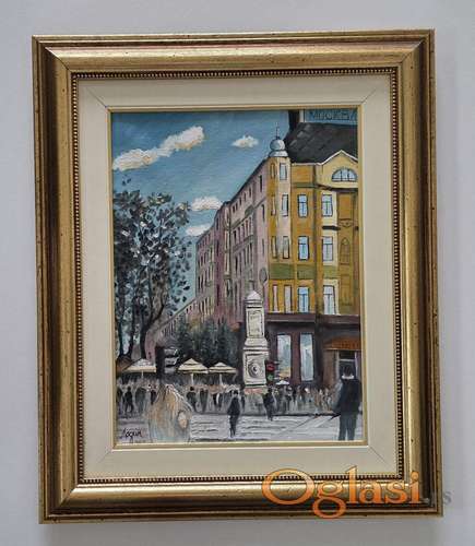 Tekst oglasa: <p>Ulje na platnu Hotel Moskva, prelepo umetnicko delo. Slika je uramljena u jako lep ram, dimenzije slike sa ramom 58 x 48. Privatna kolekcija.</p> |