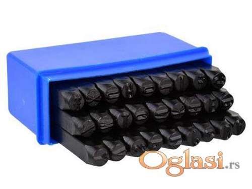 Tekst oglasa: <p>Slova za ukucavanje 8 mm <br /> 27 komada</p> <p>Slova: <br /> A, B, C, D, E, F, G, H, I, J, K, L, M, N, O, Q, P, R, S, T, U, V, W, Y, Z, X, & <br /> Visina slova: 8 mm<br /> Materijal: ojačani ugljenični čelik<br /> Brojevi su postavljeni u plastičnu kutiju <br /> Trajno obeležavanje raznih elemenata i delova brojevima , <br /> - Napravljeni od specijalnog ugljeničnog čelika simbol 1045 , <br /> - kaljeni da 50-55 HRC</p> <p>Proizvod: Poljska<br /> Novo i ne korisceno</p> <p>Ukoliko zelite da porucite, posaljite poruku preko SMS PORUKE ili VIBERA <br /> 1. Ime i prezime<br /> 2. Ulica i broj<br /> 3. Postanski broj mesto<br /> 4. Kontakt telefon</p> <p>Ili pozovite na broj telefona 0611914635</p> |