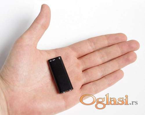 Tekst oglasa: <p>Ovaj minijaturni audio snimač se upotrebljava za potrebe profesionalnog diskretnog snimanja. Snimanje se vrši na ugrađenu flash memoriju sa mogućnošću kopiranja zapisa na računar. Uz ekstremno male dimenzije i težinu, ovaj snimač ima i malu potrošnju, pa autonomija snimanja može biti od 18-30 sati zavisno od modela, i metoda kompresije zvuka. Može se snimati i pomoću funkcije aktivacije na glas, gdje se snimač aktivira kada se počne govoriti u njegovoj okolini. Uz priloženi USB kabel i software, snimač se jednostavno priključuje na PC, i omogućuje vam da snimljene razgovore preslušavate, kopirate ili brišete. <br /><br /><br /><strong>* Najmanji digitalni snimač glasa na svetu - Ginis</strong><br /><strong>* izuzetna osetljivost mikrofona</strong><br /><strong>* Aktivira se glasom</strong><br /><strong>* Jednostavan softver</strong><br /><strong>* Trajanje baterije: 7 dana</strong></p> |