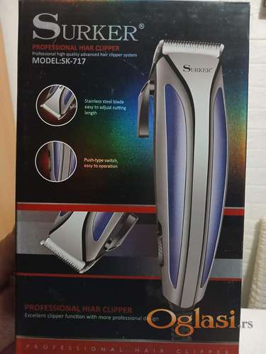 Tekst oglasa: <p>Mašinica za šišanje SURKER poseduje racionalizovano telo, glavu od legure titana<br /> (podesivu za dužinu šišanja) i četiri zamenjiva granična češlja tako da je veoma praktična<br /> i jednostavna za upotrebu. Dimenzije mašinice su 12 x 4,5cm i snage je 10w. Potpuno je novo.<br /> Šaljem brzom poštom a moguće je i lično preuzimanje u Novom Sadu. </p> |