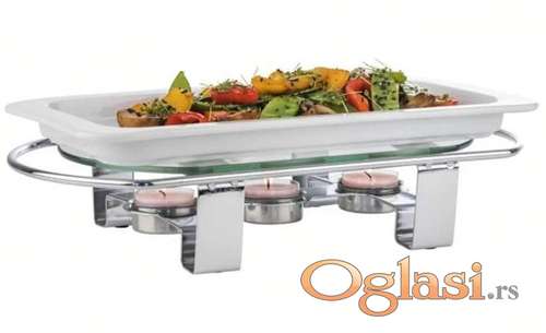 Tekst oglasa: <p>Za održavanje topline hrane za stolom.</p> <p>Grejač hrane se sastoji od hromiranog metalnog okvira i staklene ploče sa</p> <p>3 otvora za 3 čajne svećice koje osiguravaju da vaša hrana ostane stalno</p> <p>topla.</p> <p>Zahvaćajući svom dizajnu uklapa se u svaki kućni dekor kao i na</p> <p>švedskom stolu, . . . Čak i bez hrane na vrhu, ovaj grejač hrane izgleda divno</p> <p>sa upaljenim svećicama koje se reflektuju u staklenoj ploči otpornoj</p> <p>na toplotu.</p> <p> </p> <p>Pogledajte i ostale moje oglase.</p> |