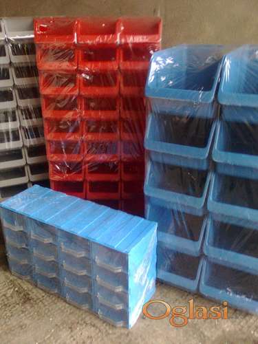 Tekst oglasa: <p>Kontejneri</p> <p>30kom 16,5x10x7 cm 1200 din</p> <p>10kom 23x15x10cm 1200 din</p> <p>5kom 33x23x15 cm 1200 din</p> <p>1 kom 48x33x20 cm 500 din</p> <p>Plavo, sivo, crveno</p> <p> </p> <p>Klaser sa 16 fioka 1800 din</p> <p>Dimenzije 40x20x13cm (širina x visina x dubina)</p> <p>Dimenzije fioke 9,5x4,5x14</p> <p>Plavi, sivi, crni</p> |
