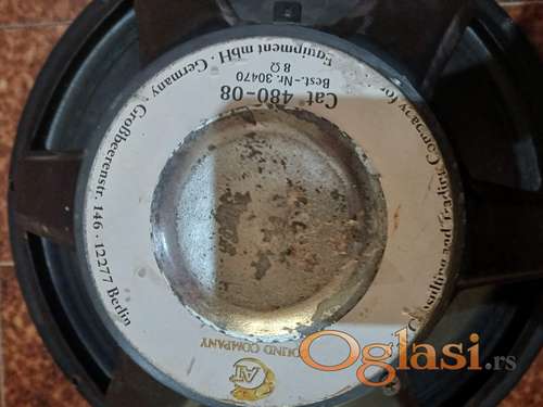 Tekst oglasa: <p>Na prodaju ozbiljan niskotonski drajver poznatog nemačkog proizvođača CAT (Consulting and Trading Company CAT 480-08 18 Inča Moćan Nemački Subwoofer drajver</p> <p>Na prodaju ozbiljan niskotonski drajver poznatog nemačkog proizvođača CAT (Consulting and Trading Company - Berlin). Reč je o modelu iz serije 480, pravoj "old school" mrcini koja je napravljena da traje i pruži brutalan bas. </p> <p>Ključne specifikacije: </p> <p>Prečnik: 18 inča (46 cm) – ogroman drajver za ozbiljne sisteme. </p> <p>Model: Cat 480-08. </p> <p>Impedansa: 8 Oma (standard za lako uparivanje sa većinom pojačala). </p> <p>Poreklo: Nemačka proizvodnja (Berlin). </p> <p>Konstrukcija: Robusna papirna membrana sa rebrastim vešanjem, idealna za duboke i definisane niske frekvencije. </p> <p>Stanje: </p> <p>Zvučnik je vizuelno odlično očuvan (vidi se na slikama). Membrana je čvrsta, vešanje elastično, a magnet je masivan i stabilan. Testiran je i radi savršeno – špulna ne grebe, zvuk je čist i moćan. </p> <p>Namena: </p> <p>Idealan za samogradnju (DIY) velikih bas binova, subwoofer kutija za kafiće, klubove ili za ekstremne kućne Hi-Fi sisteme gde je potreban "udarac u grudima". </p> <p>Cena: 100e</p> |