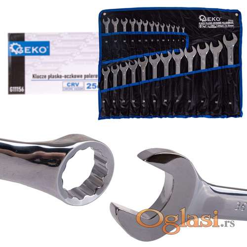 Tekst oglasa: <p>Set kljuceva okasto viljuskastih 6-36 mm </p> <p>Karakteristike proizvoda:</p> <p>Robusna konstrukcija:</p> <p>Napravljeni od izdržljivog CRV - hrom-vanadijum čelika, naši ključevi pružaju izuzetnu snagu i otpornost na habanje.</p> <p>Set od 25 ključeva:</p> <p>25 kombinovanih ključeva sa veličinama od 6 do 36 mm.</p> <p>Pogodna lokacija:</p> <p>Površinska obrada:</p> <p>hromirana i polirana površina tastera ne samo da pruža elegantan izgled, već i štiti od korozije i olakšava čišćenje.</p> <p>Ergonomski dizajn: 12 ugaona glava okastog ključa, savijena pod uglom od 15° , obezbeđuje lak i precizan pristup teško dostupnim mestima.</p> <p>Tehničke specifikacije:</p> <p>Materijal: hrom-vanadijum čelik</p> <p>Završna obrada: hromirana, polirana</p> <p>Broj tastera: 25</p> <p>Veličine: 6, 7, 8, 9, 10, 11, 12, 13, 14, 15, 16, 17, 18, 19, 20, 21, 22, 24, 25, 26, 27, 28, 30, 32, 36mm</p> <p>Tip: ravna mreža</p> <p>Novo i ne korišćeno</p> <p>Ukoliko zelite da porucite<br /> Posaljite poruku <br /> 1 Ime i prezime<br /> 2 Ulica i broj<br /> 3 Mesto i postanski broj<br /> 4 Broj telefona za kontakt</p> |