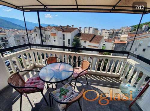 Tekst oglasa: <p>Budva Golubovina — dvosoban stan na prodaju</p> <p>Raspored: ulazni hodnik, kupaonica, dvije spavaće sobe, kuhinja, blagovaonica, dnevni boravak i terasa od 6 m², nije upisana u list nepokretnosti. Prekrasan pogled na Budvu i more.</p> <p>Stan je površine 59 m².</p> <p>Nalazi se na južnoj strani.<br /> Javni parking.<br /> Bez tereta i ograničenja.</p> <p>Zgrada nema lift; stan se nalazi na trećem spratu.</p> <p>Porez na prijenos vlasništva: 3%.<br /> Stan se prodaje namješten i opremljen.</p> |