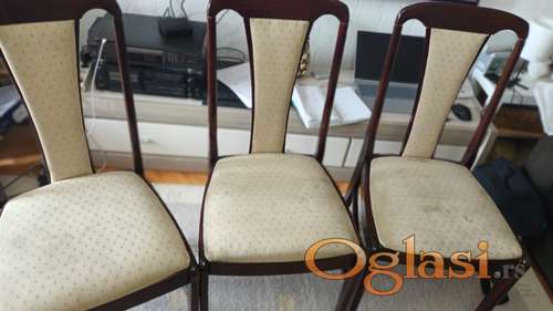 Tekst oglasa: <p>Prodajem trpezarijske stolice, 6 kom. po ukupnoj ceni od 20.999,00 dinara. Stolice su od punog drveta.</p> |