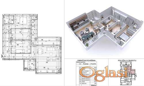 Tekst oglasa: <p></p> <p>Novogradnja na izuzetno traženoj lokaciji. Blizina centra, pešačke zone, reke, vrtića, škola, marketa. Izuzetan kvalitet gradnje i opreme. Cena sa pdv-om. Mogućnost kupovine putem stambenog kredita. Rok izgradnje april 2026. Naša preporuka. s25</p> <p>ŠIFRA: 535930</p> <p>KONTAKT: 0648222153</p> |
