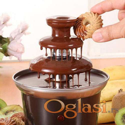 Tekst oglasa: <p>Čokoladna fontana sa 3 nivoa<br /> Trospratna čokoladna fontana je obavezan detalj ako želite da napravite slavlje koje se pamti i impresionirate svoje prijatelje i rodbinu! Deca je obožavaju i to ne kriju! A kako ni ne bi?<br /> Ona je zabavna, intrigantna i pruža nam zadovoljstvo da se zasladimo! Banane, jagode, maline, višnje, trešnje ili neko drugo voće – izaberite i prepustite se uživanju! Zašto biste iznajmljivali korišćene čokoladne fontane za venčanja, rođendane ili neka druga slavlja, kada po povoljnoj ceni možete imati svoju! Ostaće Vam kao uspomena na lepe trenutke i ulepšavati prostor, a zabave neće više biti iste bez nje!<br /> Uputstvo za upotrebu:<br /> Da biste koristili ovu čokoladnu fontanu, potrebno Vam je od 300 do 500 g čokolade.<br /> Prvo treba da istopite čokoladu na ringli ili u mikrotalasnoj pećnici. Dodajte malo ulja kako bi čokolada bila ređa.<br /> Sipajte istopljenu čokoladu u metalni deo pa uključite prekidač za grejanje ( HEAT ON).<br /> Pre nego što uključite motor, proverite da li je čokolada dovoljno retka da može da se rasporedi na gornje slojeve.<br /> Čokolada će se prelivati u fontani. Fantastičan užitak uz razno voće i keksiće!<br /> Osim za čokoladu, fontanu možete je koristiti i za sir. Potrebno je prvo da ga istopite.<br /> Karakteristike:<br /> Troslojna<br /> Visina: 22 cm<br /> Prečnik metalne posude: 15 cm<br /> Prečnik postolja: 8 cm<br /> 2 prekidača, za topljenje i za motor<br /> Jačina: 30 W<br /><strong><strong>Mogucnost Licnog Preuzimanja na Novom Beogradu!<br /> Slanjem Brzom Postom! </strong></strong><br /> </p> |