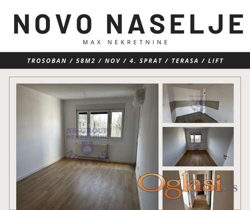 Tekst oglasa: <p>Predstavljamo vam fenomenalnu nekretninu u srcu Novog Naselje, stan se sastoji od dve prostrane spavaće sobe, kupatilo, wc, vešeraj, dnevni boravak sa trpezarijom. Stan gleda na dvorište, planirano je krajem maja da bude useljeno. Za više informacija o nekretnini kontaktirajte naše agente prodaje...</p> |